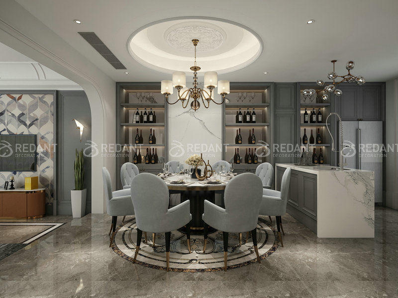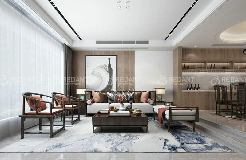 导语:本户型定位为新东方风格,援引东方文化的价值内核,依托当代的设计手法,表现“用设计复兴人文美学经典”的新东方格调。户型的整体风格淡雅自然,呈现出儒雅、素静之美。置身其中,很容易能在表面的形式之下,有一种对东方文化的熟悉的亲切感。是一个景美、意正、情浓、味雅的新东方风格居所。电视背景墙的大理石,地毯里的...