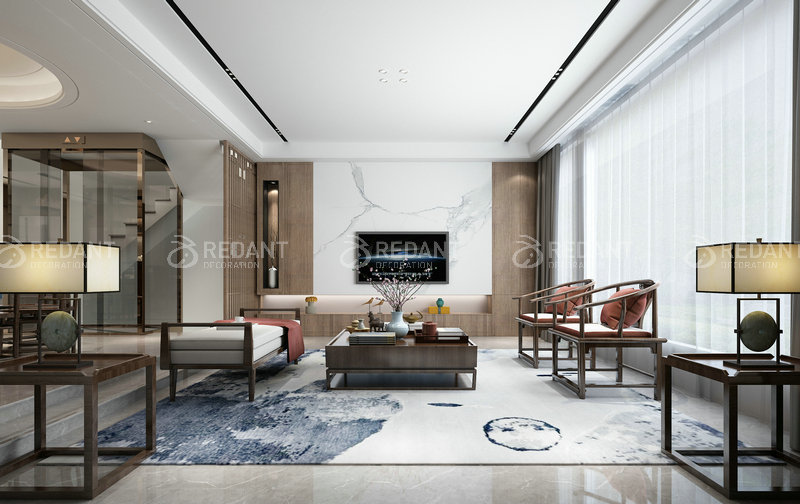 电视背景墙的大理石,地毯里的水墨境意,都是东方元素的典型代表。悠然于世俗之外的惬意,令人身心放松。