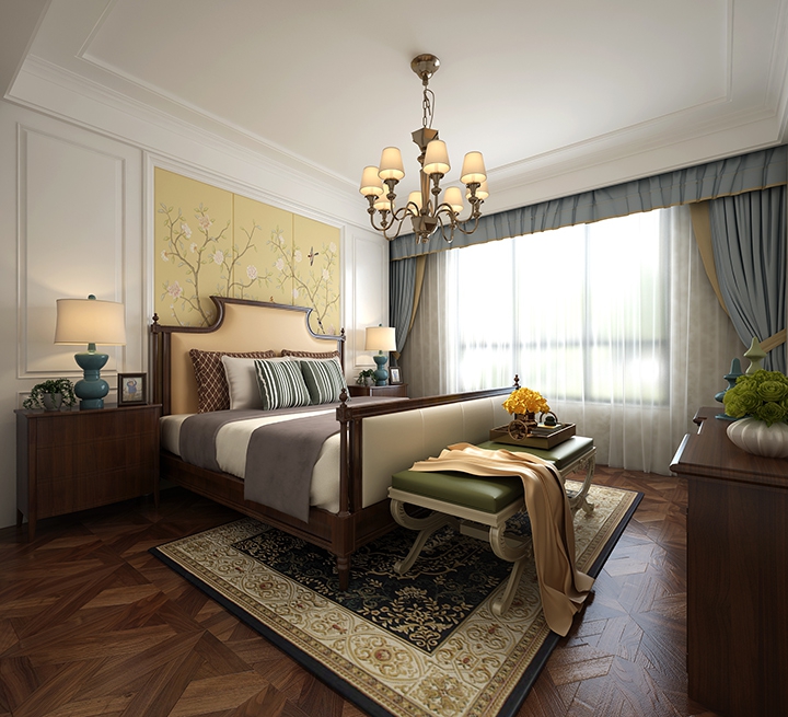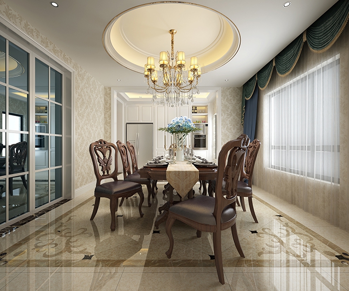 本案采用欧式风格,将具有传统文化及传统寓意的一些元素符号运用现代的手法在配饰上呈现出来,表现一种沉淀与“释怀”;在空间中细致拿捏着静谧与活跃、朴素与奢华、当代与传统的关系,让古典与现代完美结合,传统与时尚并存。