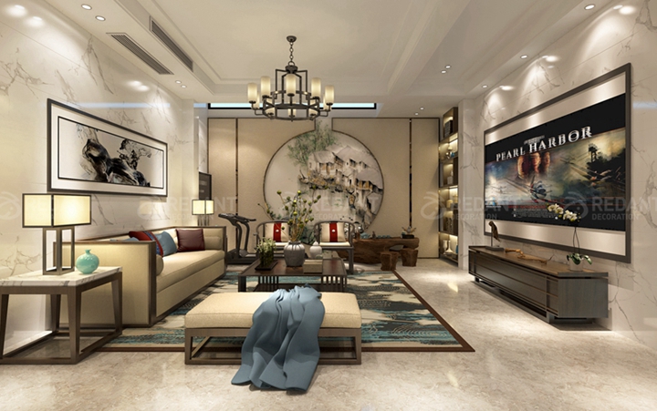 导语:本案出自红蚂蚁装饰设计师陈召武,以“韵”为主题,谐基调上彰显出时尚的气质,软装与硬装上的中式元素的运用,成就了本案的精髓与灵魂,红蚂蚁装饰陈召武老师不拘泥于单一的设计风格,力图在优雅中呈现出中式的文化气息,追求深沉里显露尊贵,典雅中浸透时尚的设计表现。