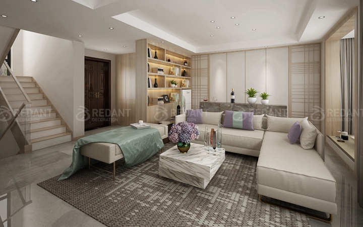 导语:本案出自红蚂蚁装饰设计师李晓虎,当初红蚂蚁装饰李老师在和业主夫妇沟通时,业主表达出对日式风格的喜爱,最终红蚂蚁装饰李老师将本方案风格定位为日式风格,将自然界的原木材质大量运用于装修中,秉承着传统美学中对原始形态的推崇,着意显示木材的本来面目,加以精密的打磨,表现出原木的独特肌理。