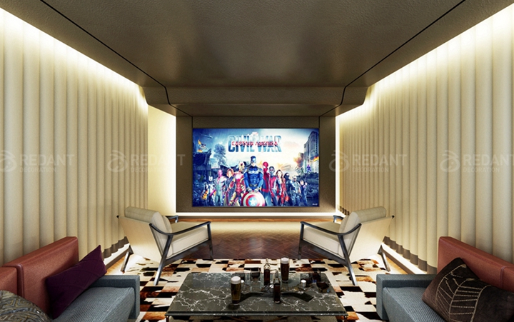 本案是一套叠加别墅的下叠户型。苏州装修公司中红蚂蚁装饰做这种叠加别墅真的是数不胜数了,特别得心应手。原有地下室的层高5米多,可以多一层夹层。因此在不占用原有空间的前提下,夹层上实现了一个独立的影音室和一个可供休闲的茶室。一层空间的处理上,我们把原有两卫改为只留一个公共卫生间,同时增加了厨房的面积,让原本喜欢烹饪的业主能够有更好的施展空间。